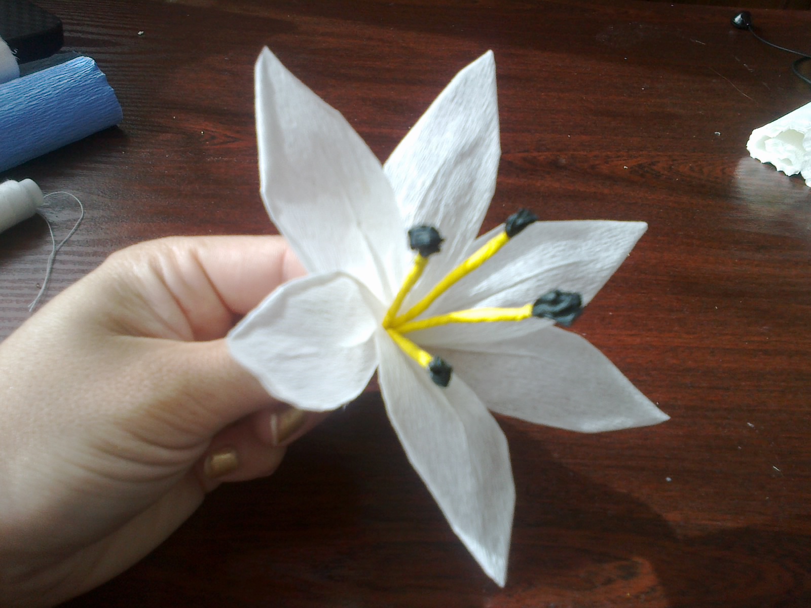 Wykańczając wachlarz używam patyczka do szaszłyków aby ładnie zaginać rureczki , chowamy je miedzy splot i podklejamy klejem.